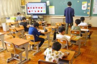 教室で担任の先生がお家の人へのお話をしている間、1年生は音楽室でDVDのアニメをみました。初めて入る音楽室に興味津々でしたが、アニメが始まるとみんな画面に集中していました。何とかお天気も持ちこたえてくれて、桜の花に見送られながら親子で下校しました。明日からも元気に登校してね。