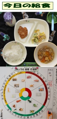 ルーロー飯は、甘辛いしょうゆで煮込んだ豚肉を、ほかほかのご飯にたっぷりかけた〇〇の家庭料理です。屋台やレストランでも定番のメニューとなっています。給食では、いつもと違うブロックの形をした大きめの豚肉を、しょうがや玉ねぎ、たけのこ、にんにく、しいたけと一緒に、オイスターソースなどの調味料で煮込みました。しっかり味のついた肉と野菜をご飯にのせて、ご飯をもりもり食べましょう。(給食委員の昼の放送より)