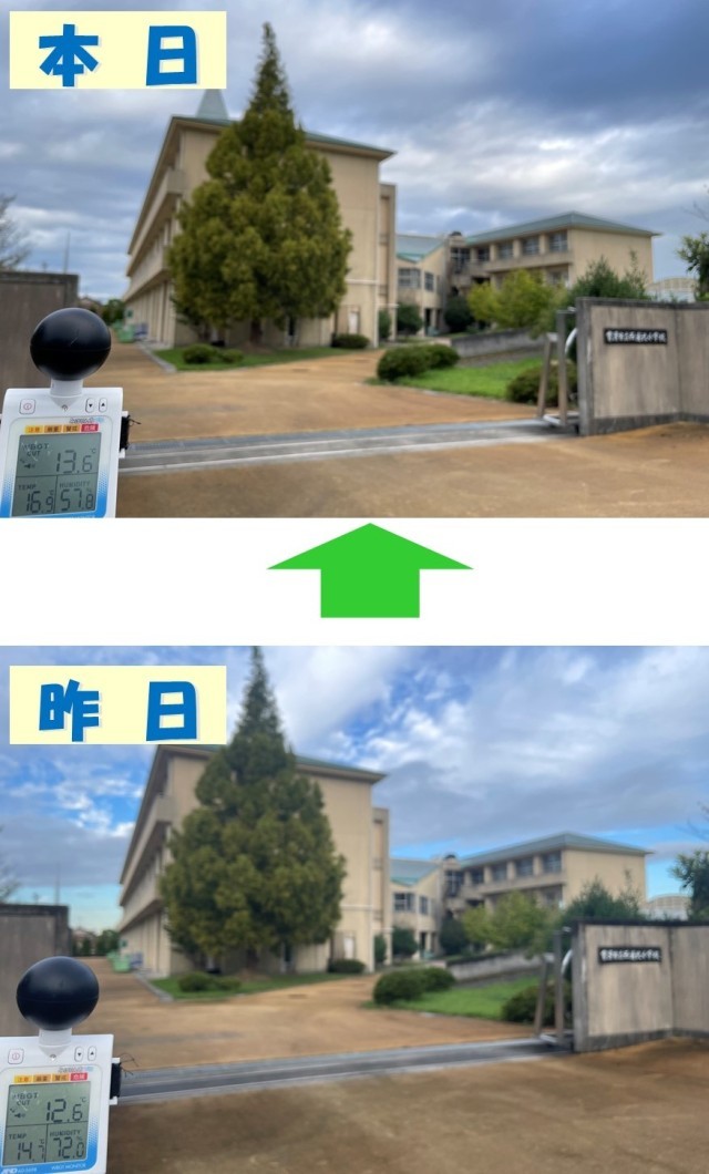 日中は、気温が上がるようです。汗の処理等、体調管理を気をつけさせていと思います。
