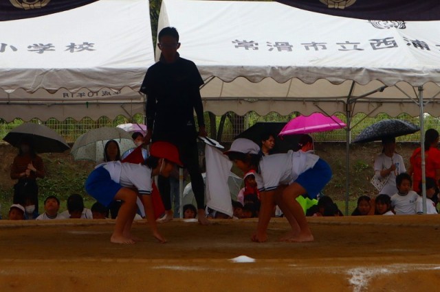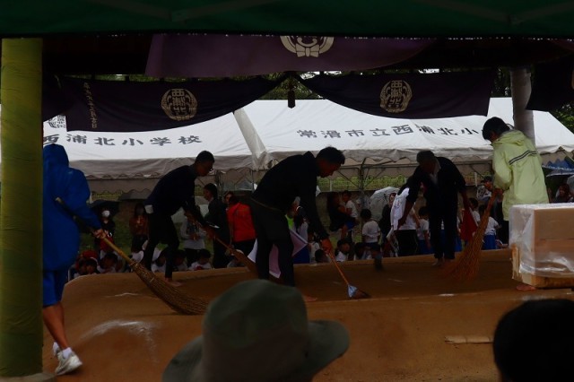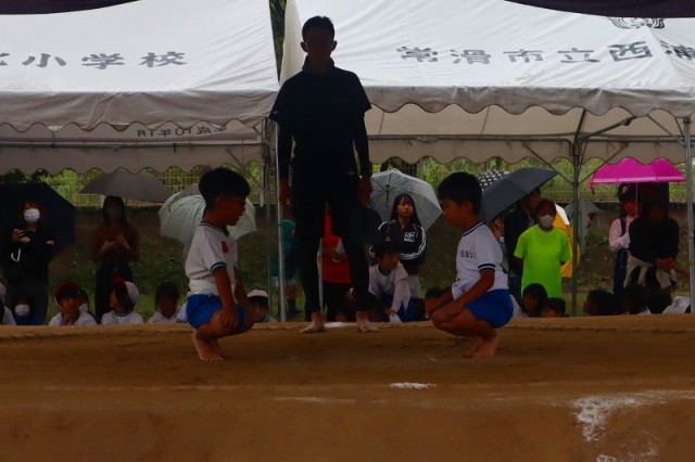 今日は、雨降りでのスタート。PTA、地域の方に雨処理で対応していただき、進めることができました。