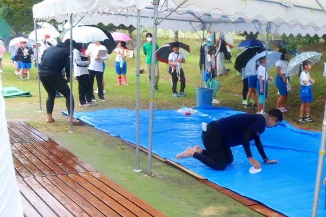 傘をさしての観戦となりますので、最前列は、譲り合ってご覧ください。 よろしくお願いします