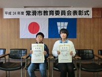 2月14日(木)市役所で教育委員会の表彰式がありました。これは,愛知県や全国といった大きな大会や作品コンクールで優秀な成績をあげた児童生徒を表彰する式です。