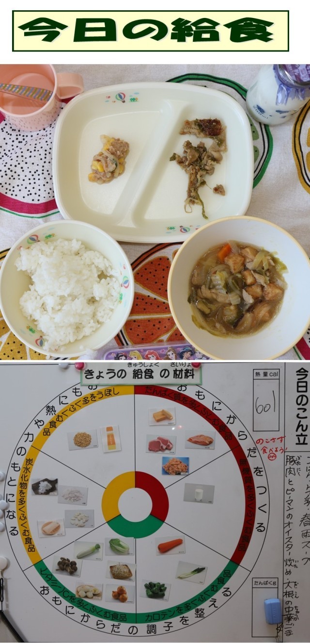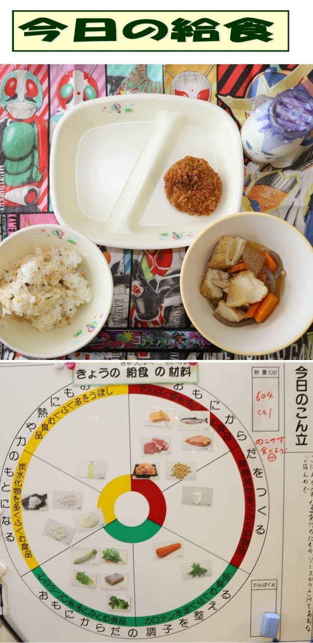○○は、体の中 でビタミンAに変 わり、目や皮膚 の健康を守ったり、抵抗力を高くしたりするはたらきがあります。大根葉を食べて、体の調子を整えましょう。(給食委員の昼の放送より)