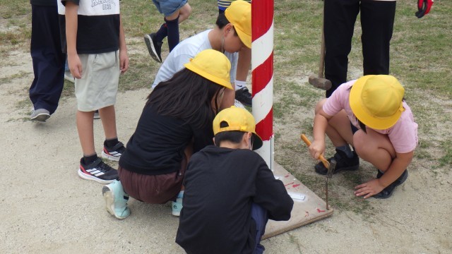10/10 運動会準備 公開日 2025/10/10 更新日 2025/10/10 校長室 今日は午後から4~6年生が委員会に分かれて運動会の準備を行いました。ラインを引いたり、椅子を運んだり、開閉会式の練習をしたりしました。少ない人数でも、みんな積極的に活動していました。PTAの方にもお手伝いをいただいて、テントをはりました。明日は天気が心配です。どうか、晴れますように! +3