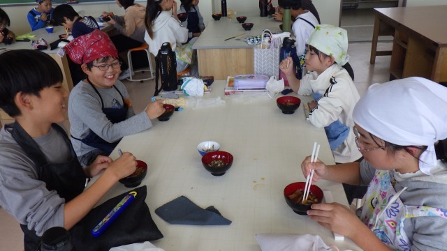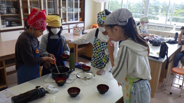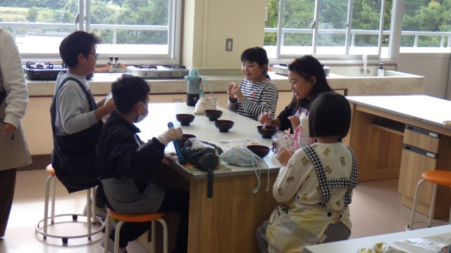 10/28 授業の様子 公開日 2025/10/28 更新日 2025/10/28 校長室 1年生は、「カルメン前奏曲」のリズムに合わせて、カスタネットやタンブリンを楽しそうに鳴らしていました。5年生は、家庭科のみそ汁作りでした。煮干しからだしをとり、野菜を切ってやわらかくなるまで煮て、みそを入れてできあがり。ぜひ、家でも好きな実を入れて作ってみてください。 +3