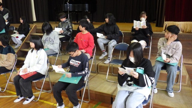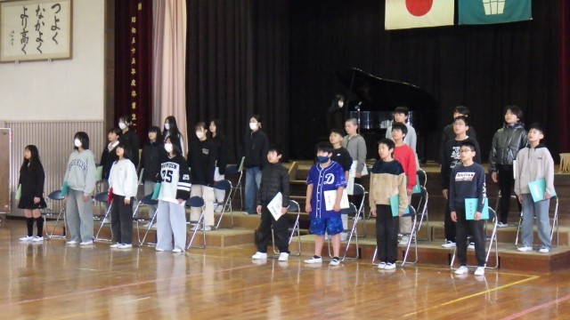 6年生が最後の卒業式練習を行いました。最後に松尾先生から、6年間の成長の記録をまとめたプレゼントがありました。一人一人渡してもらい、自分の成長を確認していました。明日は卒業式。いよいよ本番を待つのみです。