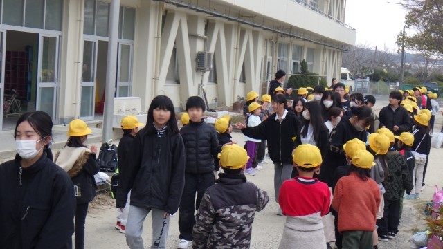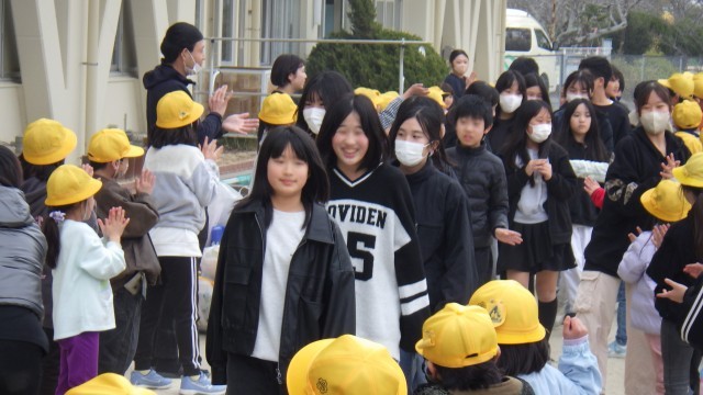 1~3年生は明日の卒業式に参加しないため、今日が6年生とお別れの日となります。下校の時間に見送りをしました。お世話になった6年生にしっかりお礼とお別れを伝えることができました。