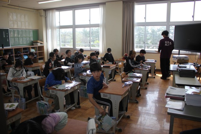 始業式のあとは、新しい教室で新学期のスタートです。教室で教科書をもらったり、先生の話を聞いたりしました。