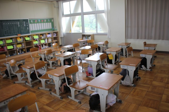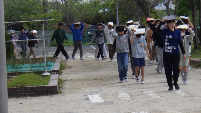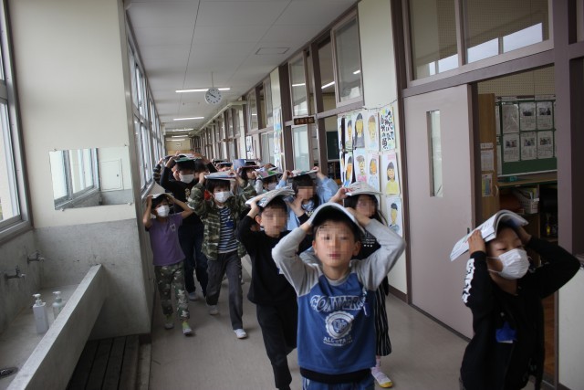 地震の避難訓練を行いました。ちょうど東北で大きな地震があったばかりでしたので、より真剣に取り組めていました。静かに素早く避難することができました。