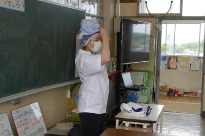 給食センターで働く人の服装のひみつや道具のひみつが分かりました。