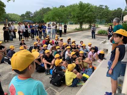 待ちに待った野外教育活動です!出発式を終え、いよいよ出発です。
