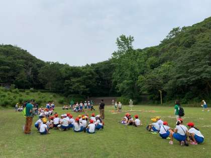 フライングディスクをします。天気は曇りです。