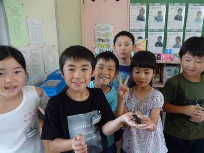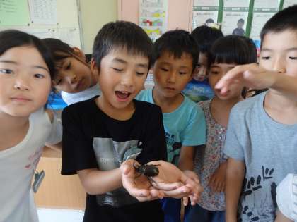 6月25日(火)カブトムシの幼虫を2年生から受け継いで,生き物係さんががんばってお世話をしたかいがあり,みごと成虫になりました。おめでとう!!