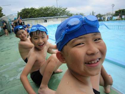 今日で4回目のプール指導です。プールはとっても楽しいね。いい笑顔!