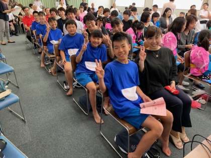 TSIE海外派遣団結団式を山田副市長、加藤教育長はじめ多数の御来賓の方の御臨席をいただき、とこなめ市民交流センターにて開催しました。結団式では、派遣先で披露するカルチャーショーの発表も行いました。小鈴谷小の発表は、トップバッターということもあり、緊張したかもしれませんが、これまでの練習の成果を発揮して、素晴らしい発表をすることができました。小鈴谷小の皆さんには、月曜日の朝会で紹介をします。お楽しみに!