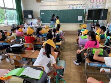 5時間目に通学団会を行いました。