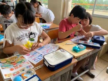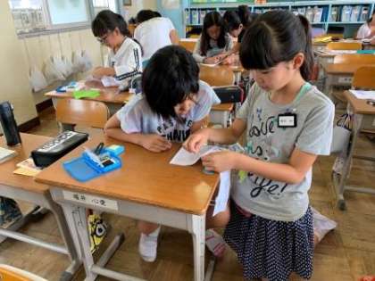 家庭科の授業で、裁縫を行っています。今日は本返し縫いを練習しています。なかなか上手くできずに困っている子に、早くできた子が教えている様子が、教室の至る所で見られました。このように互いに教え合うことを通して、ともに学び合い、高め合えるようにしていきたいと思います。