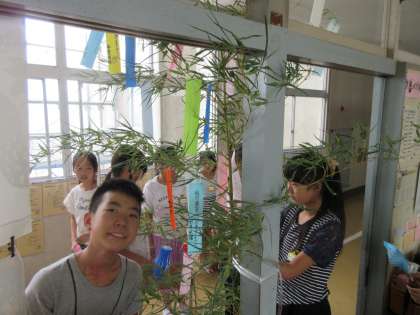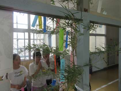願いがかないますように 公開日 2019/07/05 更新日 2019/07/05 6 年 7月5日(金) 今年も応援団の方に笹の木を用意していただくことができました。いつもありがとうございます。 七夕に向けてみんなで短冊に願いごとを書いて,笹の葉に飾りました。みんなの願いがかないますように…。