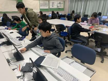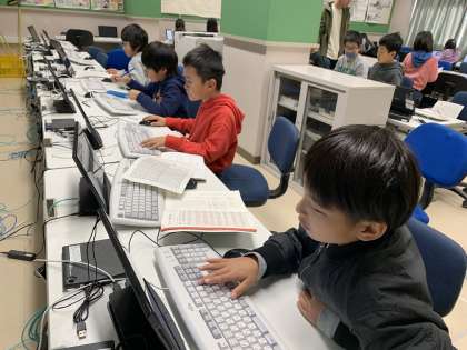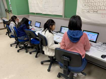 昨日の福祉実践教室で学んだ点字について、さらにインターネットや本を活用して調べました。点字を発明したルイ・ブライユのおいたちや盲導犬について等各自のテーマに沿って調べています。
