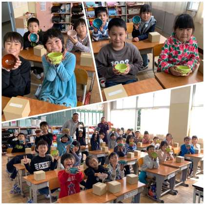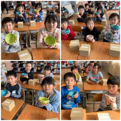 10月9日に行った陶芸体験で作った茶碗が届きました。みんな自分の作ったお茶碗を手に取っても嬉しそうですね!お茶碗作りに携わっていただいた多くの方々に感謝です。