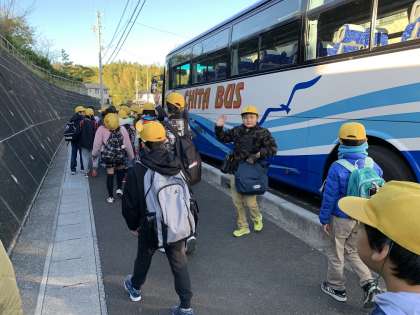 5年生が社会見学に出発しました。トヨタとヤクルトの工場見学に行ってきます。気をつけて行ってらっしゃい!