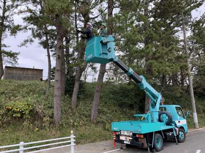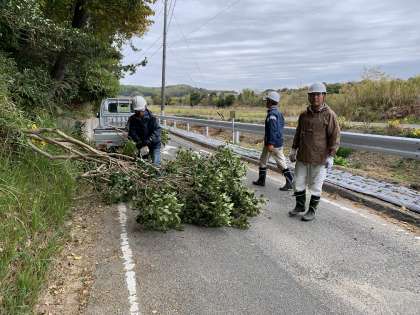 近隣の皆様にご迷惑をおかけしておりました校地の南側道路沿いにはみ出していた木々の伐採作業を小鈴谷小学校応援団の皆さんが行ってくださいました。早朝から作業に取り組んでくださり、本当にありがとうございます!