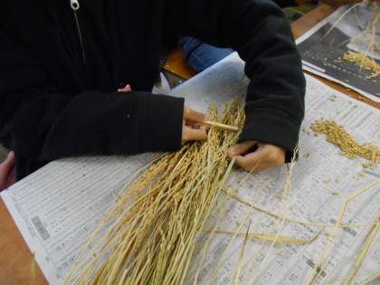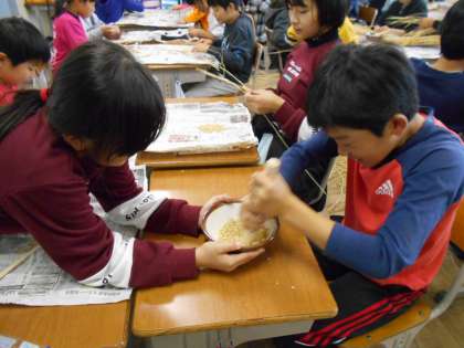 教室中がわら,もみがらだらけになりました。