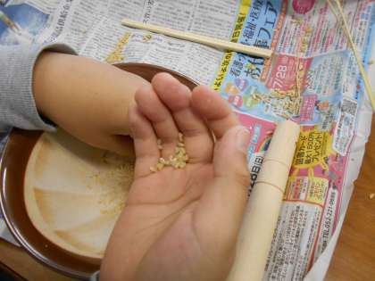 毎日,ぱくぱく食べているお米ですが,手ですると大変な作業だね,と話をしていました。