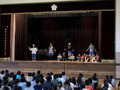 12月から縄跳び運動に取り組みます。来週は短なわ週間になります。短なわ週間に向けて、児童集会を行い、体育・美化委員会の皆さんが技の紹介をしてくれました。1月に行われる短なわとび集会の鉄人チャレンジに向けて、しっかり練習して体力作りに励みましょう!