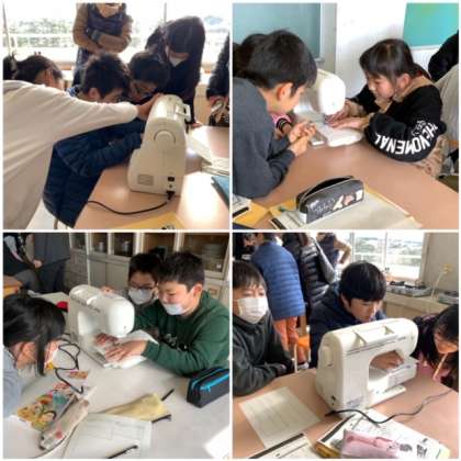 ミシンに挑戦! 公開日 2020/01/21 更新日 2020/01/21 5 年 1月21日(火) 家庭科の授業でミシンの使い方を学びます。今日は、その最初の授業でした。初めは、みんなドキドキしながら、ゆっくりと慎重に縫う練習をしていました。使い方をしっかりと覚えて、素敵なエプロンを完成させましょう!