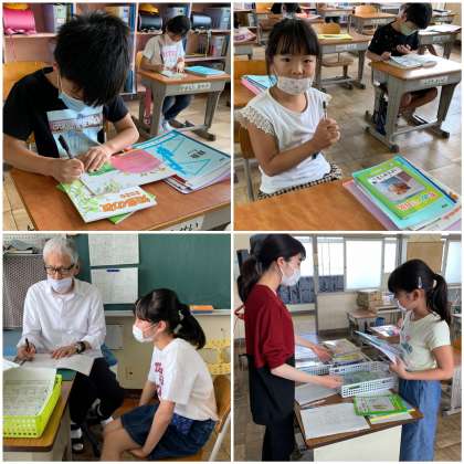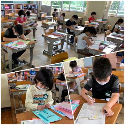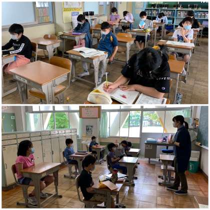 各学級では、学年の課題点検や自宅学習の様子についての確認などをしています。