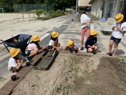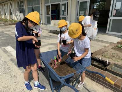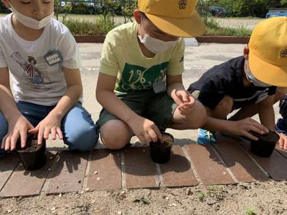 今日は、一人ずつヘチマの種まきをしました。どんな生長をしていくのか、しっかり観察してください。