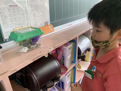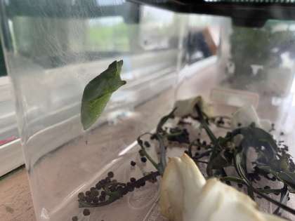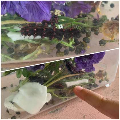 3年生の教室には、もう1種類違うチョウの幼虫がいました。