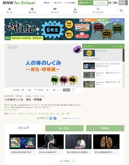 NHK for School「ふしぎエンドレス」第7回人の体のしくみ 消化・呼吸編