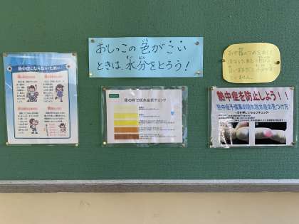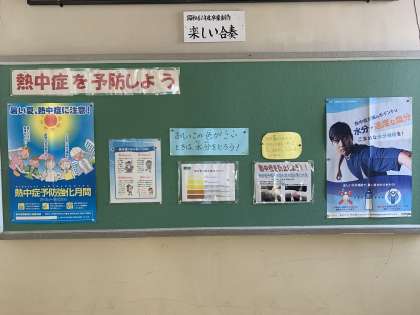 熱中症を予防しよう! 公開日 2020/06/02 更新日 2020/06/02 保健室 6月に入り、ジメジメとして気温の高い日が増えてきます。熱中症に気をつけて生活しなければなりません。登校の際には、必ずお茶を持ってくるようにしてください。 マスクをしていると、喉が渇いていることに気づきにくくなるそうです。学校では、こまめに給水タイムを設定するように指導していきます。