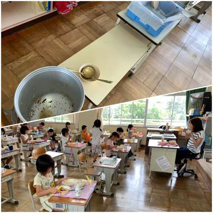 今日も静かにもぐもぐ給食、もりもり食べてます!