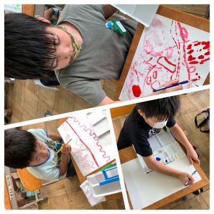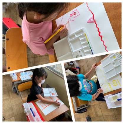 また、3・4時間目には、初めて絵の具を使いました。