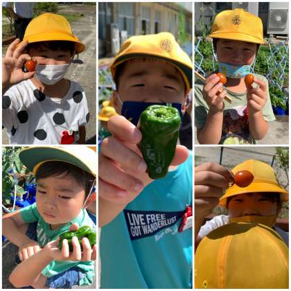 とれました! 公開日 2020/06/23 更新日 2020/06/23 2 年 6月23日(火) 今日も育てている野菜の収穫ができました。 トマトにピーマン、みんなとっても嬉しそうだね! まだまだこれからいっぱいとれますよ。しっかりお世話をしようね。