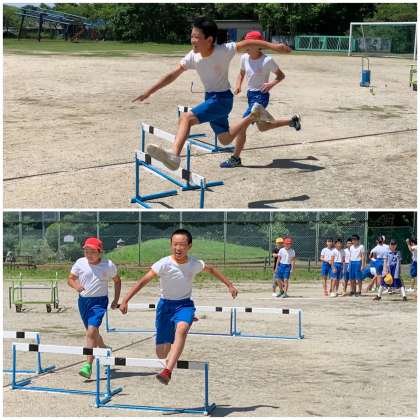 自分の歩幅に合わせてハードル間の距離を決めて、走るコースや練習の場を決めています。友達の走る姿を見ることも、上達のためには大切な練習です。待っている間の時間も大切にしましょう!