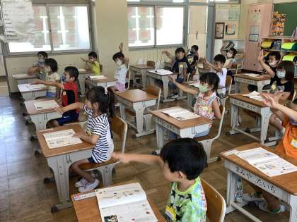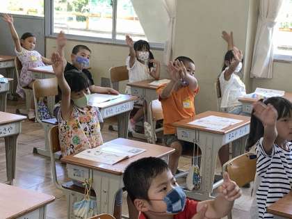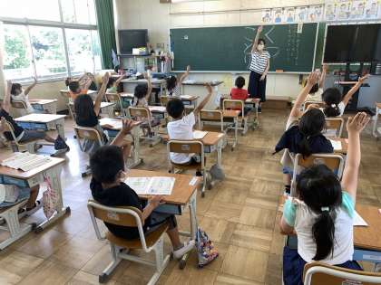 まずはみんなと一緒に空書きで練習です。