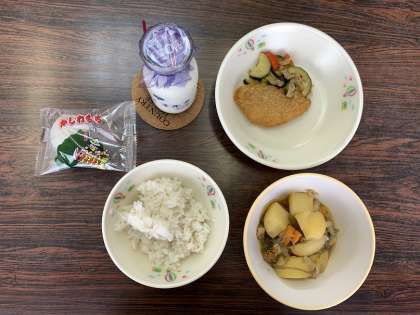 かしわもち 公開日 2020/06/25 更新日 2020/06/25 全学年 6月25日(木) 給食に柏餅がつきました。休校期間中に出す予定だったのでしょうか。 学校が再開し、このように給食が食べられることは、当たり前ではありますが、素晴らしいことだと思います。