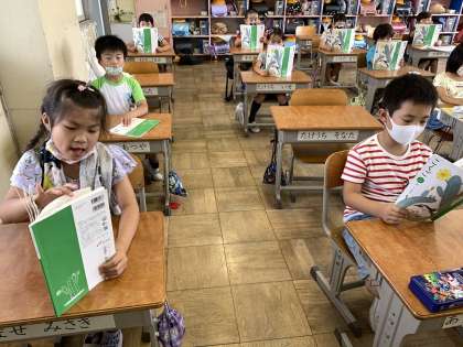 中には、教科書を見なくても本文を唱えることができる子もいるようですね。たくさん読む練習をした証拠ですね。