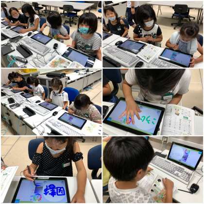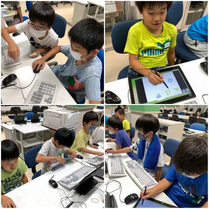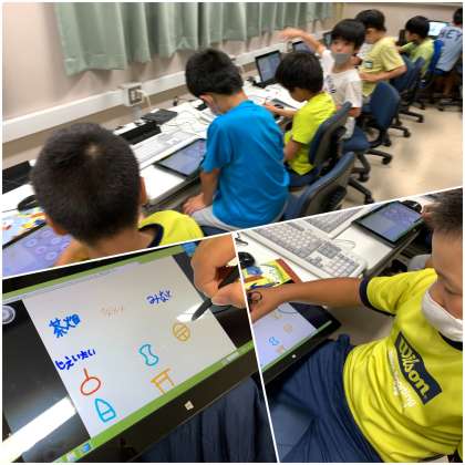 6時間目にプログラミングソフトの「viscuit(ビスケット)」を使って、地図記号クイズを作りました。