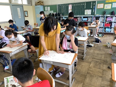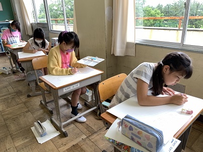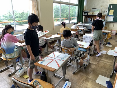5年生が、明るい選挙のポスターを制作しています。選挙について、どうやって伝えるかな?