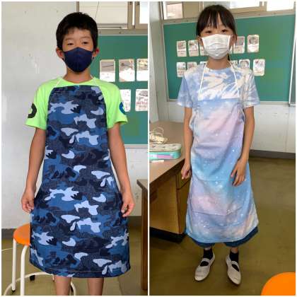 自分の作ったエプロンで、早く調理実習がしたいね。
