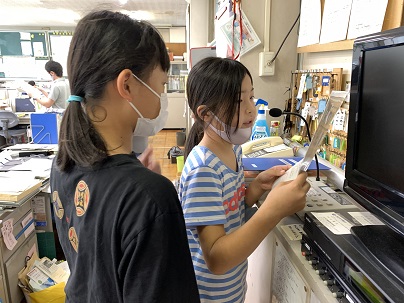 さすが6年生!どきどきの4年生! 公開日 2020/07/15 更新日 2020/07/15 児童会・委員会 7月15日(水) 大放課の体育・美化委員会の放送。6年生が4年生の放送の仕方を指導しています。 優しく丁寧に教える6年生。さすがです。4年生はドキドキです。じょうずにできましたよ!