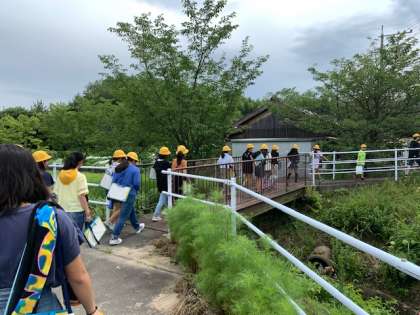 総合的な学習として行う鈴渓学習に向けて、小鈴谷の町巡りに出発しました。行ってきます!