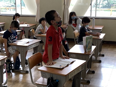 おさるのるっぺくんの家や学校での様子から、自分自身の生活を振り返り、規則正しい生活をすることの大切さについて考えました。