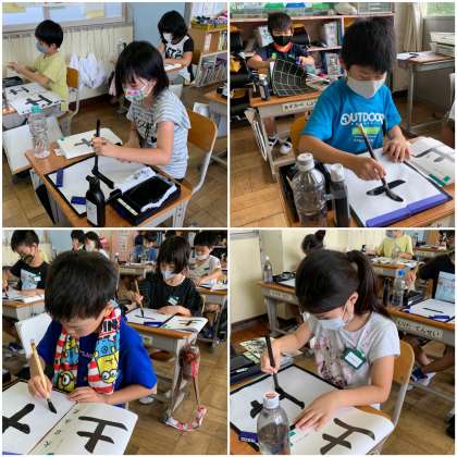 「土」縦画の筆遣いの練習をしています。練習の仕方も身についてきました。