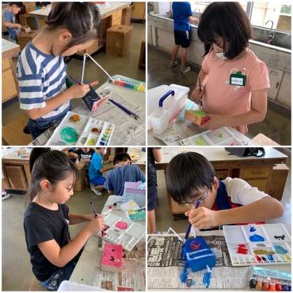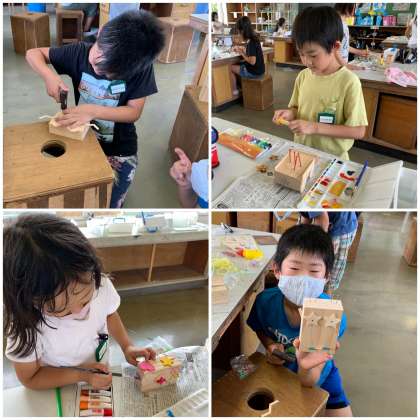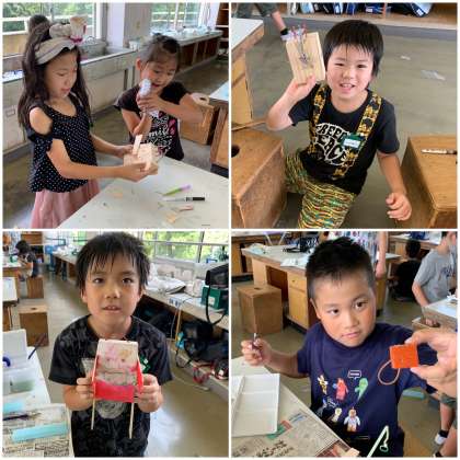今日の図工は、先週の続きでトントン!釘打ちをしました。早い子は、今日から色塗りを始めています。釘打ちもずいぶん上達してきました。職人さんみたいですよ!